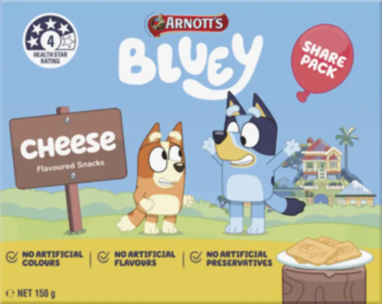 Cheese: Bound to make you say, ‘Cheese and Crackers’, these delectable mild cheese-flavoured biscuits feature Bluey and Bingo and offer the perfect amount of crunch.