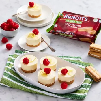 Our Gluten free Shortbread Cream Cheesecakes are simple, delicious and perfect for entertaining. Arnott's Gluten free Shortbread Creams make a scrumptious, buttery base.