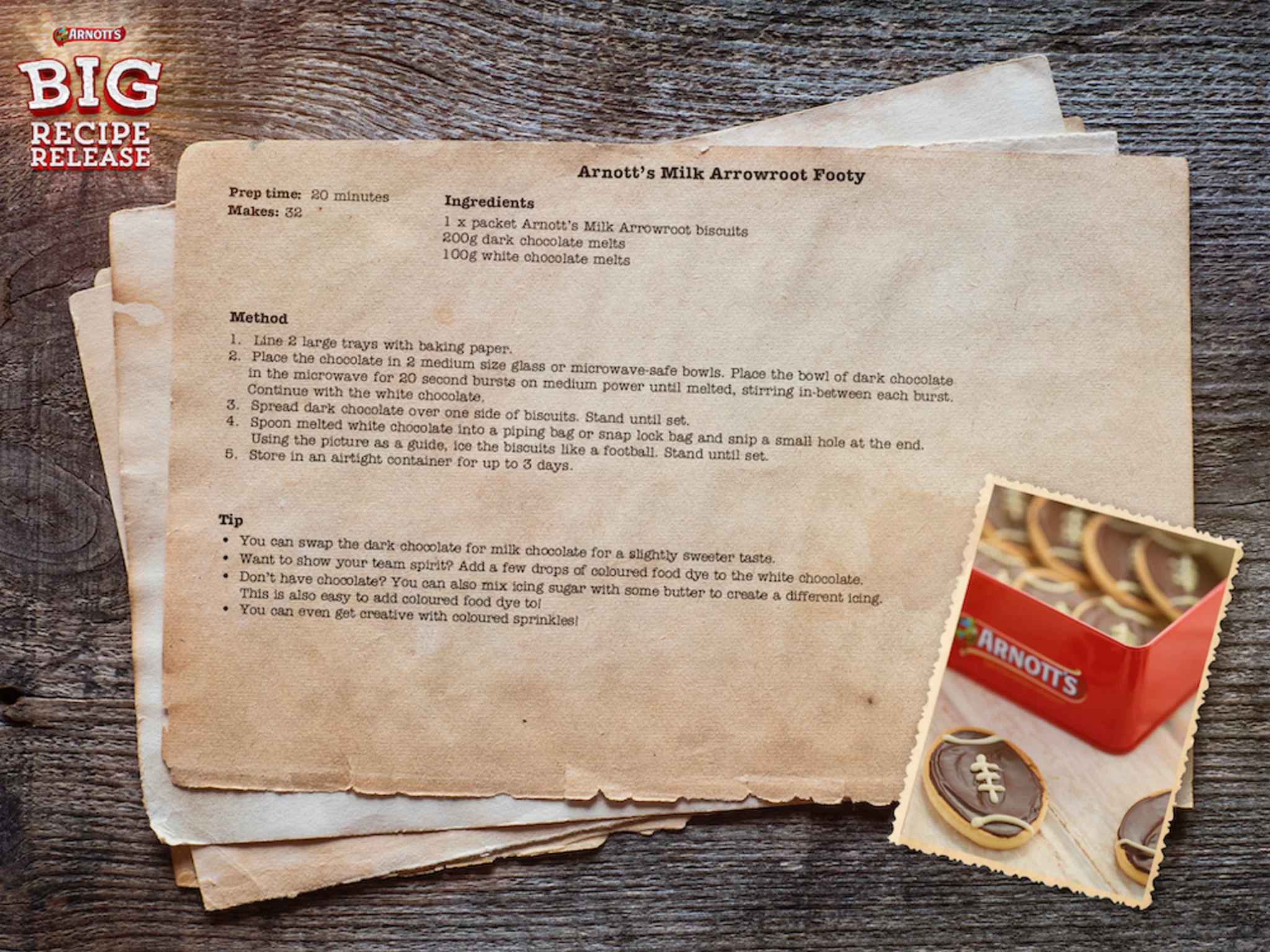 You ice the bikkie…and the crowd roars! To celebrate the return of footy, we’re calling on fans and amateur artists alike to give this Aussie pantry staple a makeover. This week, your kitchen becomes the stadium. Are you game enough to tackle this recipe? Or will you miss the mark?