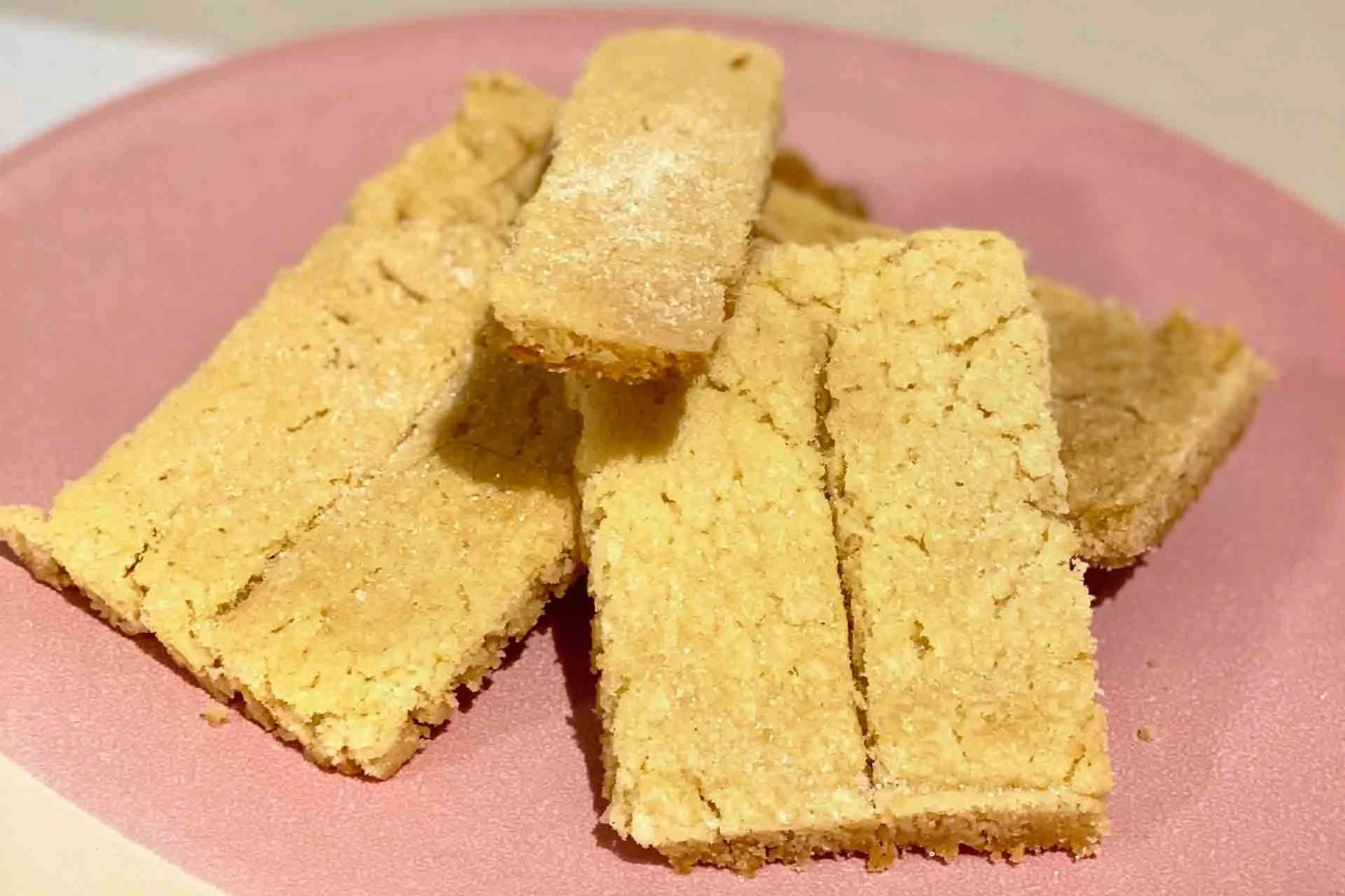 Remove from oven and using a small sharp knife, immediately slice 5cm crossways x 7.5cm lengthways into rectangular pieces. Then run the knife gently ½ way into the shortbread pieces, not touching the bottom, to make the finger indent. Let the biscuit cool in the pan for 10-15 min before moving to a cooling rack.
