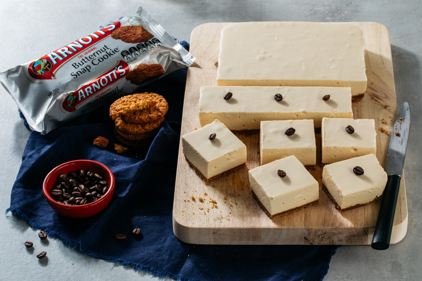 Arnott's No Bake Coffee Cheesecake Slice, this delicious recipe is wonderfully light, as any cheesecake should be- with a rich coffee flavour. Perfect for sharing with friends at picnics.